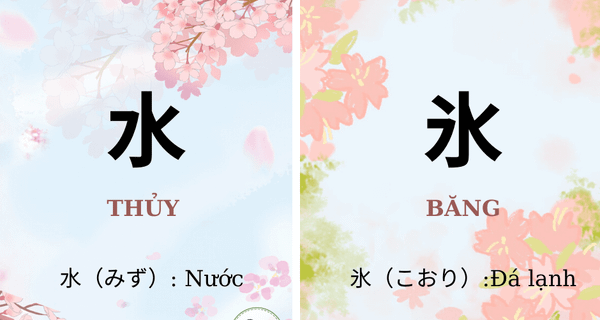 Chữ Băng (氷) có một nét phẩy ở bộ bên trái, còn chữ Thủy (水) thì không có.