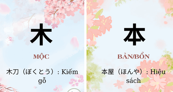 Chữ Bản/Bổn (本) có nét gạch ở dưới còn chữ Mộc (木) thì không có.