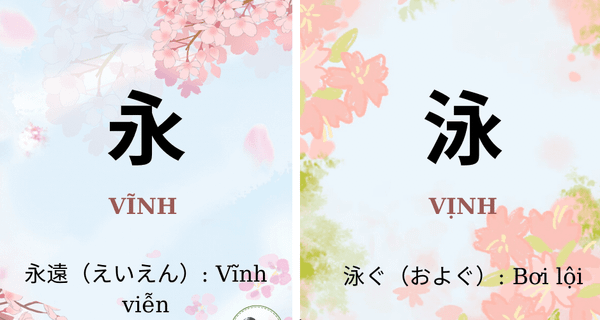 Chữ Vịnh (泳) có nghĩa là bơi lội, liên quan đến nước nên có thêm bộ chấm thủy (氵) ở bên trái, còn chữ Vĩnh (永) thì không có.
