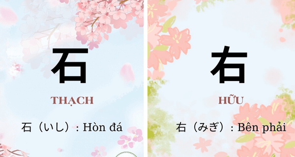 Chữ Hữu (右) có nét lên trên, còn chữ Thạch (石) không có.