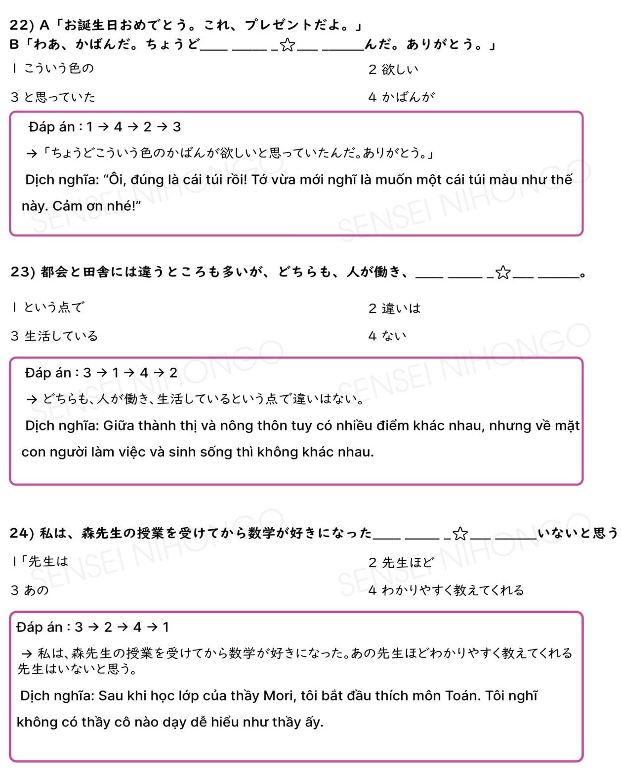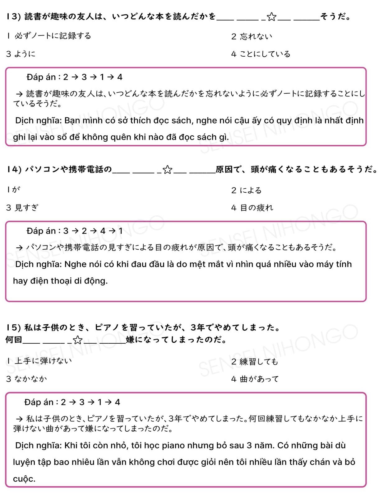 30 Câu bài tập Phần Điền Sao N3 (Có đáp án)