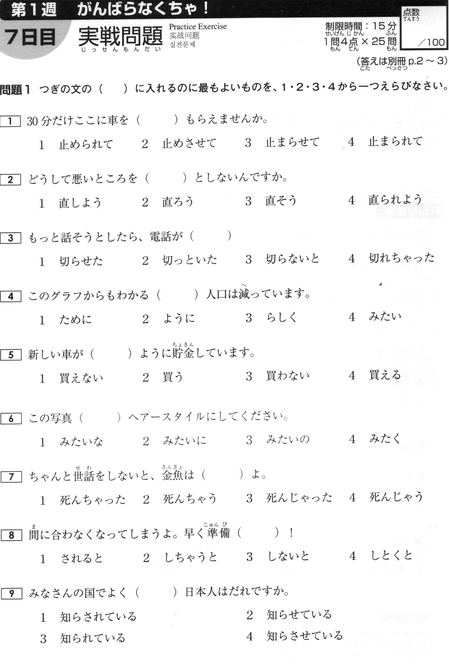Bài tập Ngữ Pháp JLPT N3: Phần 1 Bài tập Ngữ Pháp JLPT N3: Phần 1 (Có đáp án) Đáp án: . 2026-04-21 adminn Share
