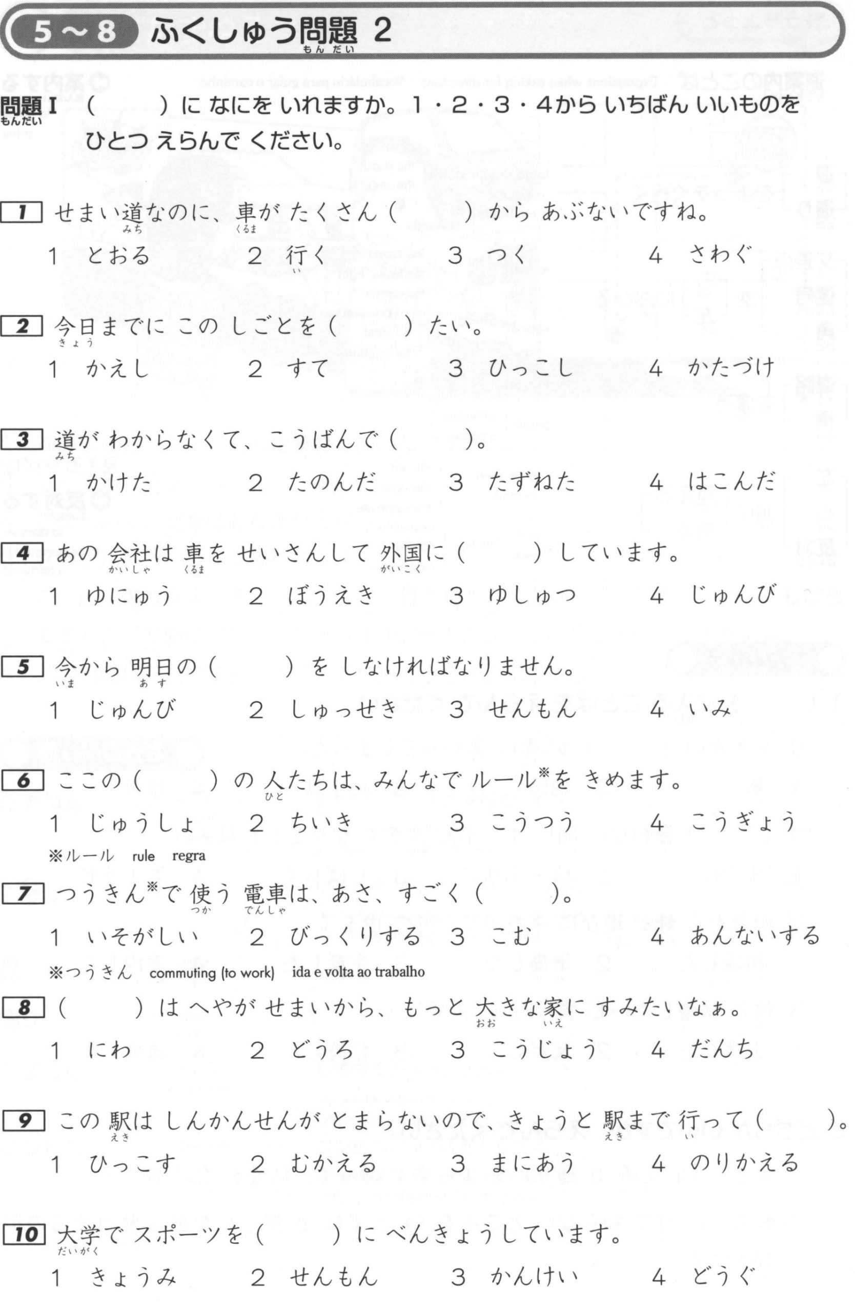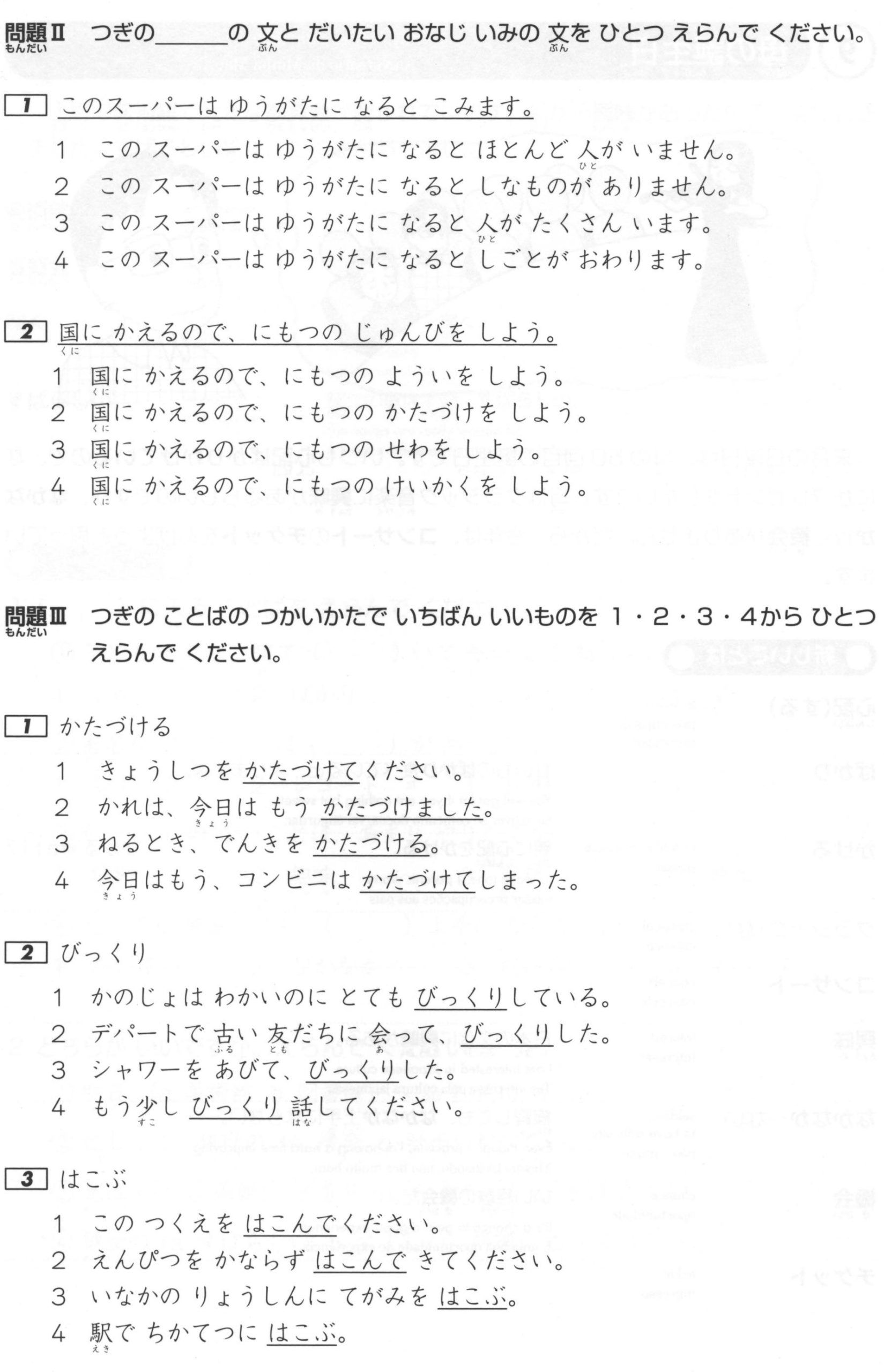 Bài tập Từ vựng JLPT N4: Phần 2