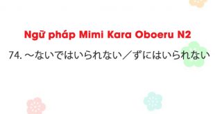 Ngữ pháp Mimi Kara Oboeru N2: 74. ~ないではいられない/ずにはいられない 74. ~ないではいられない/ずにはいられない (nai de wa irarenai/ zu ni wa irarenai) a. Ý nghĩa: Dù sao đi nữa cũng không thể không làm ~/tự dưng làm ~ mất. Chủ ngữ về cơ bản là ngôi thứ nhấtどうしても~しないでいることができない/自然に~してしまう 主語は基本的には一人称 b. Liên kết: 動詞のナイ形(ではいられない)ただし、する+ず→せず Ví …