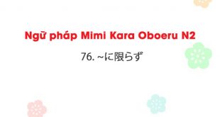 Ngữ pháp Mimi Kara Oboeru N2: 76. ~に限らず 76. ~に限らず (ni kagirazu) a. 意味: だけでなく Không chỉ b. 名詞 Ví dụ: 1, お申し込みは平日に限らず、土日でも受け付けております。 Không chỉ ngày thường, ngay cả thứ 7, Chủ Nhật chúng tôi vẫn tiếp nhận đăng ký. 2, 最近では夏に限らず冬でもアイスクリームがよく売れるようだ。 Gần đây, không chỉ mùa hè, ngay cả …