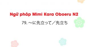 Ngữ pháp Mimi Kara Oboeru N2: 79. ~に先立って/先立ち 79. ~に先立って/先立ち (ni sakidatte/ sakidachi) a. Ý nghĩa: Trước khi ~ ~の前に b. Liên kết: 名詞/動詞の辞書形 Ví dụ: 1, 選手団の出発に先立って、激励会が開かれた。 Trước khi các tuyển thủ xuất phát, tiệc khích lệ tinh thần đã được tổ chức. 2, 記者会見に先立ち、講演要旨が配られた。 Trước buổi họp báo, …