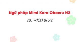 Ngữ pháp Mimi Kara Oboeru N2: 70. ~だけあって 70. ~だけあって (dake atte) a. Ý nghĩa: Vì ~ nên… (kết quả tương ứng, thường chỉ sự việc mang ý nghĩa tích cực) ~だから、その身分、能力にふさわしく→ 多くは(+)の事実 b. Liên kết: 名詞/[動詞・イ形容詞・ナ形容詞]の名詞修飾形 1, ドイツはビールの本場だけあって、種類が多い。 Cội nguồn của bia có khác, Đức có rất nhiều loại …