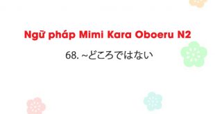 Ngữ pháp Mimi Kara Oboeru N2: 68. ~どころではない 68. ~どころではない (dokoro dewa nai) a. Ý nghĩa: そのような軽い程度ではない không ~ (~ là việc nhỏ nhặt, đơn giản) b. Liên kết: 名詞/動詞の普通体 Ví dụ: 1, 今日はあまりに忙しくて、食事どころではなかった。 Hôm nay bận quá, tôi chả ăn uống gì luôn. 2, 母が手術をすることになり、心配で勉強どころではない。 Vì lo lắng chuyện …