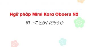 Ngữ pháp Mimi Kara Oboeru N2: 63. ~ことか/ だろうか 63. ~ことか/ だろうか (koto ka/ darou ka) a. Ý nghĩa: 感嘆、詠嘆などの気持ちを強く表す biểu hiện cảm xúc mạnh mẽ không sao kể xiết (cảm thán, thở dài) b. Liên kết: 動詞のタ形/[イ形容詞・な形容詞] の名詞修旅形 Ví dụ: 1, 外国での一人ぐらしはどんなに寂しいことか。 Sống ở nước ngoài một mình, thật …