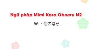 Ngữ pháp Mimi Kara Oboeru N2: 66. ~ものなら 66. ~ものなら (mono nara) a. Ý nghĩa 1: (不可能、あるいはそれに近いが) もしできるなら~たい Nếu có thể thì muốn ~ (chỉ sự việc không có khả năng xảy ra hoặc ít có khả năng thực hiện) Liên kết: 動詞の可能形 1, 人生をやり直せものならやり直したい。 Nếu có thể, tôi muốn …
