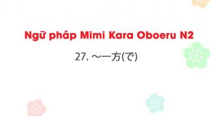 Ngữ pháp Mimi Kara Oboeru N2: 27. ~一方(で) 27. ~一方(で) (ippou (de)) a. Ý nghĩa : Đồng thời với ~ thì mặt khác là… (so sánh) b. Liên kết :名詞+の/動詞の辞書形 Ví dụ: 1, あの先生は厳しく指導する一方で、学生の相談にもよくのってくれる。 Giáo viên đó chỉ dạy rất khắt khe nhưng cũng thường tư vấn cho học sinh …