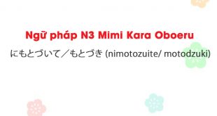 Ngữ pháp N3 Mimi Kara Oboeru – にもとづいて/もとづき (nimotozuite/ motodzuki) Cùng gửi đến các bạn tài liệu học ngữ pháp tiếng Nhật N3 được trích từ giáo trình Mimi Kara Oboeru N3. 93. ~にもとづいて/もとづき a. Ý nghĩa: “Căn cứ vào ~”, “trên cơ sở ~” b. Cấu trúc: N + …
