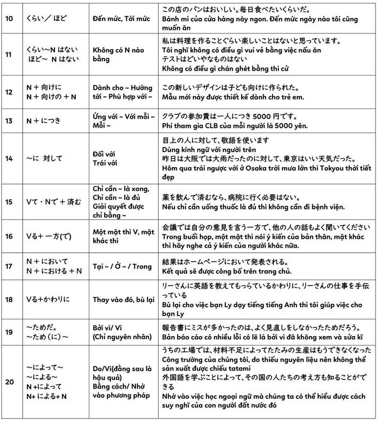 Ôn tập nhanh 100 Ngữ Pháp N3 quan trọng