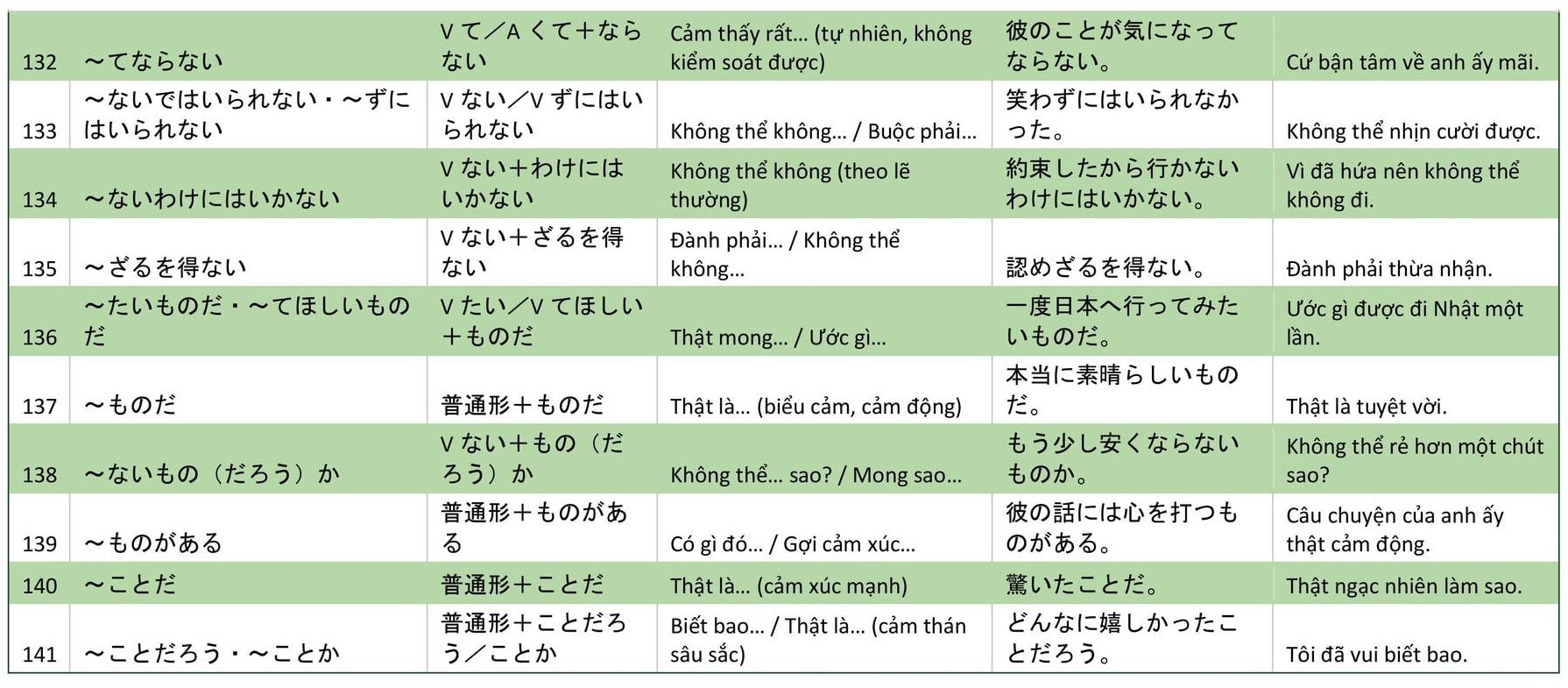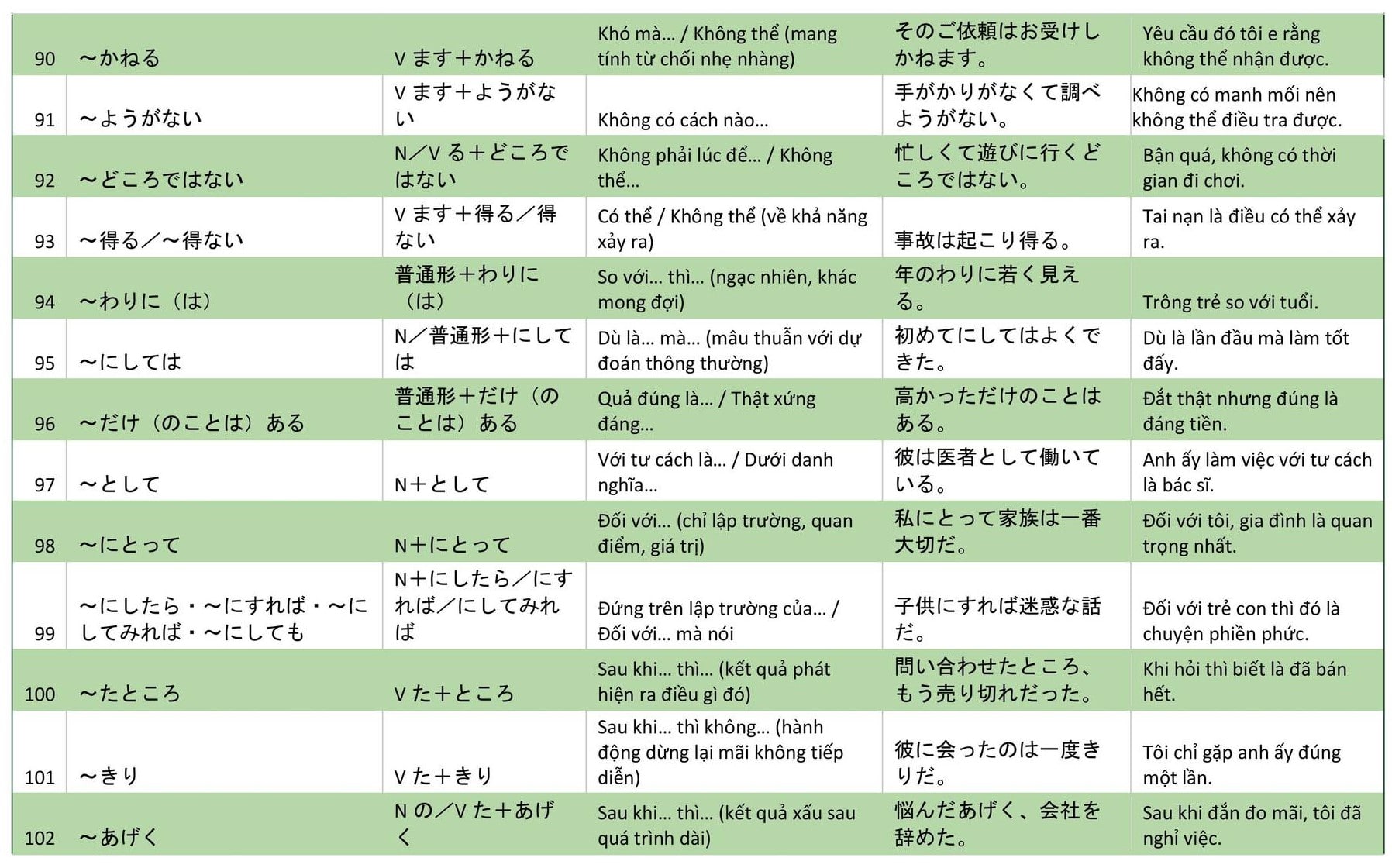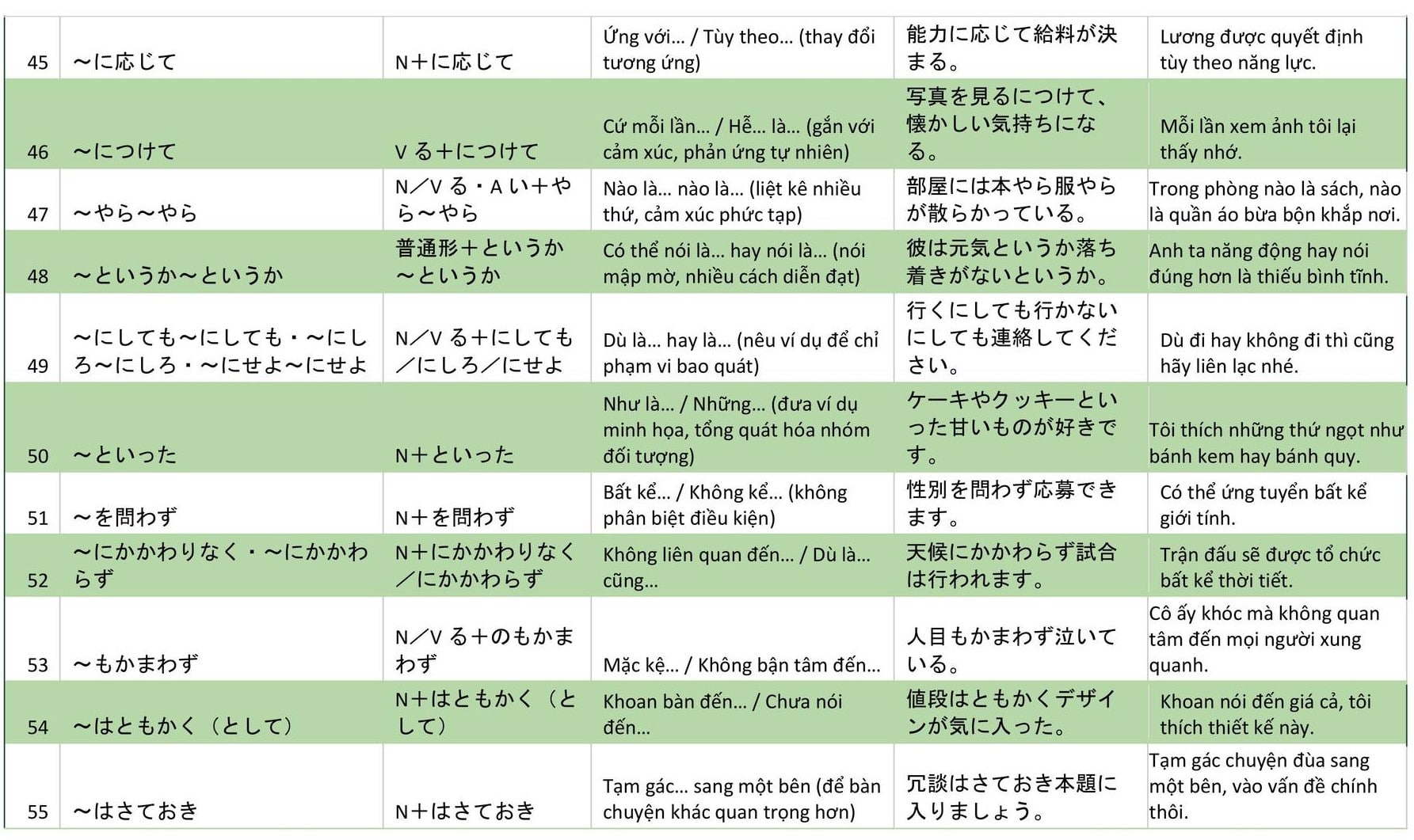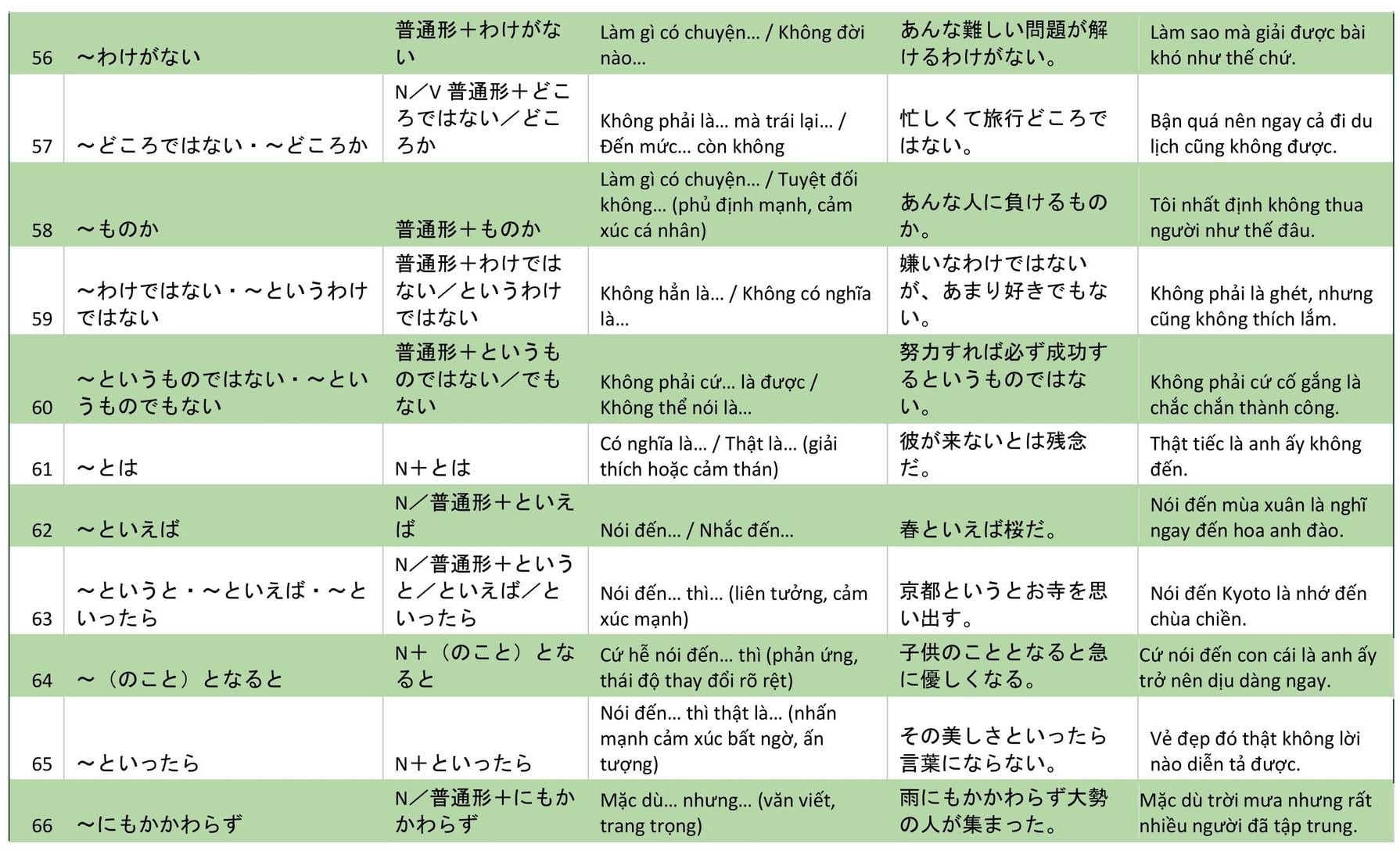 Tóm tắt 141 Cấu trúc ngữ pháp tiếng Nhật N2.