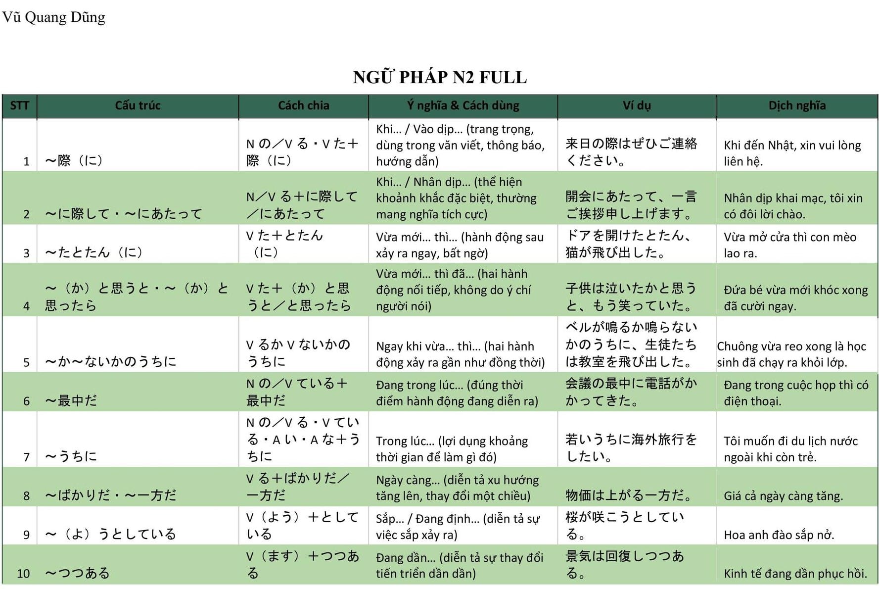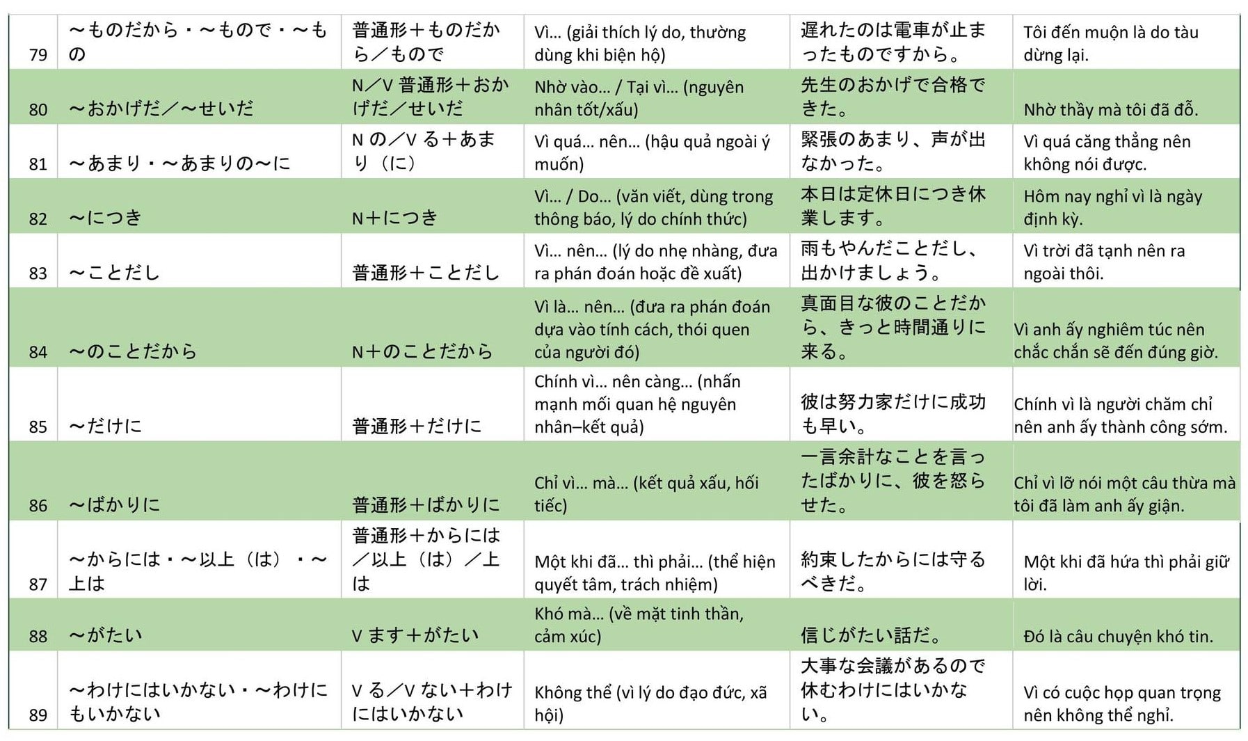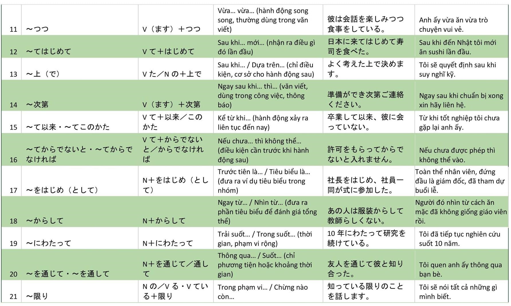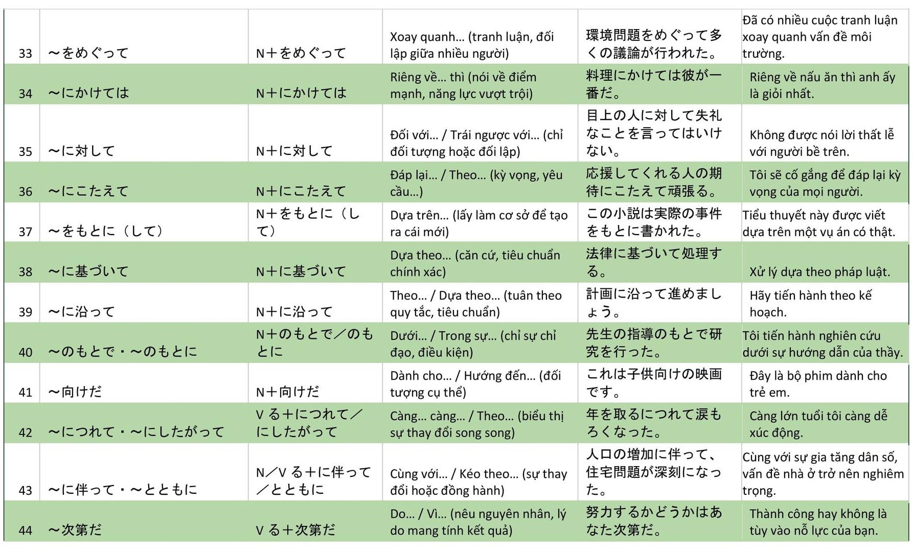 Tóm tắt 141 Cấu trúc ngữ pháp tiếng Nhật N2.