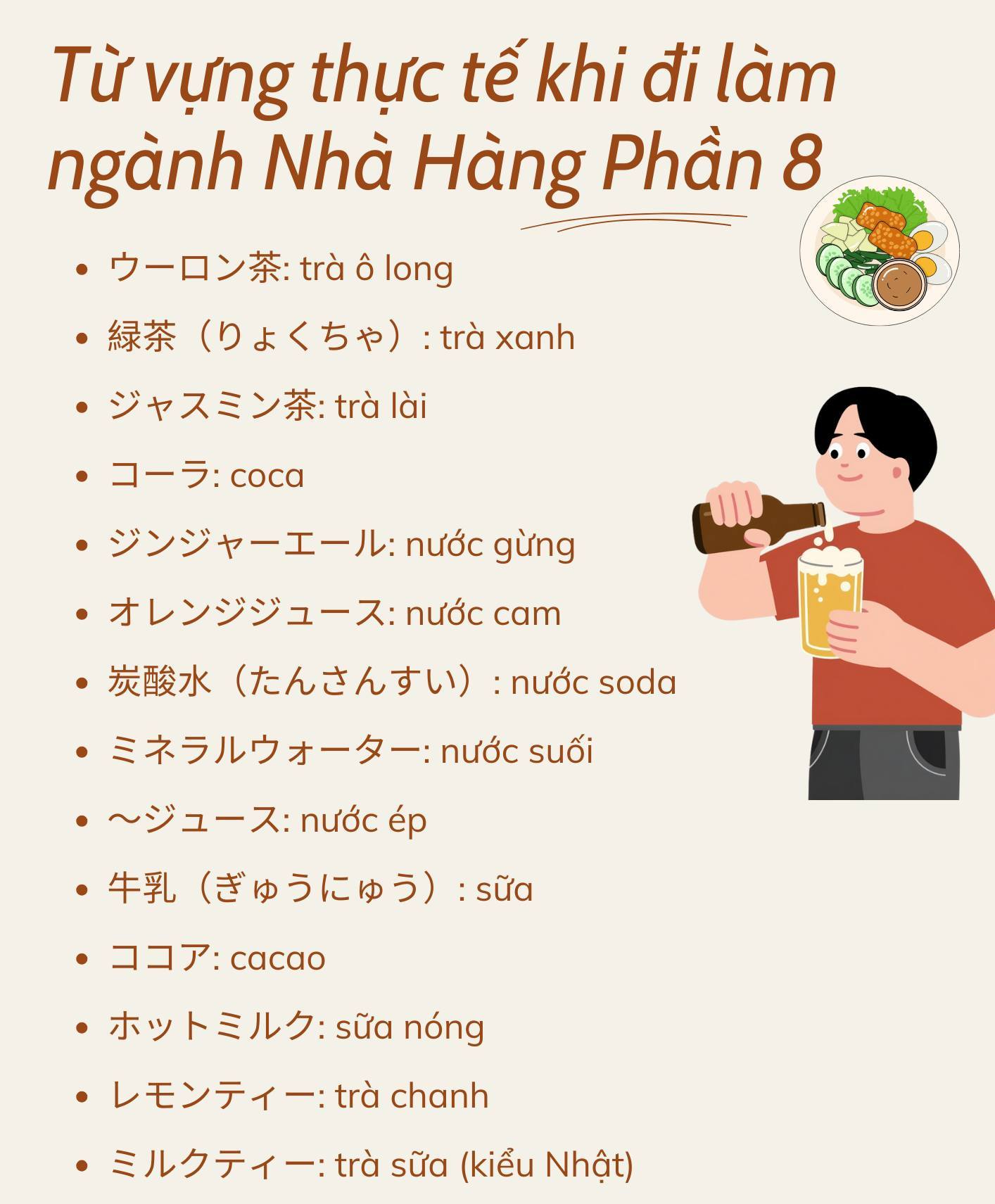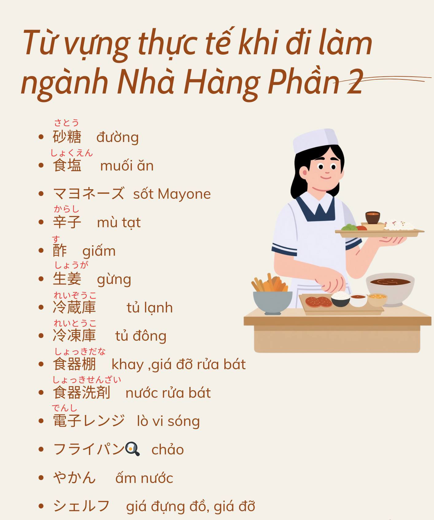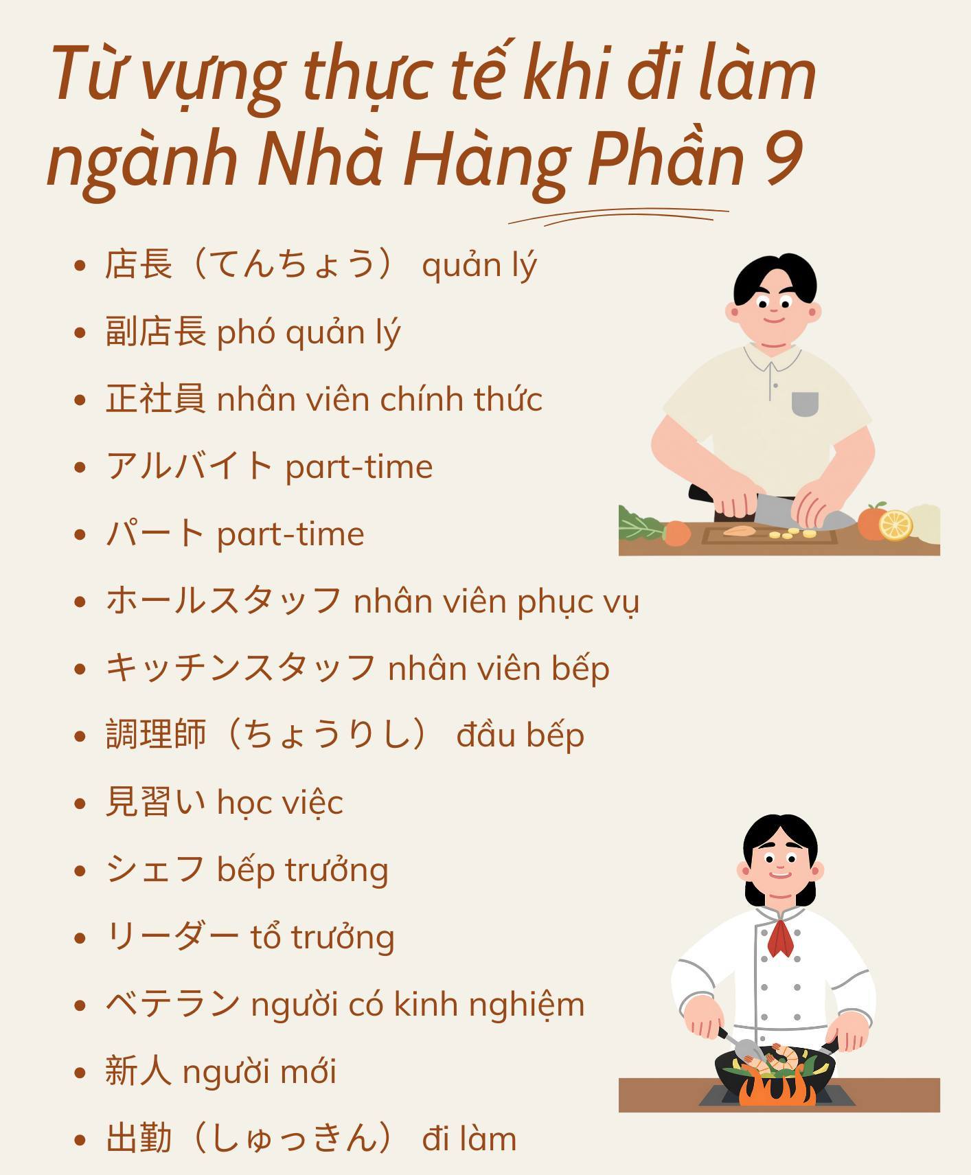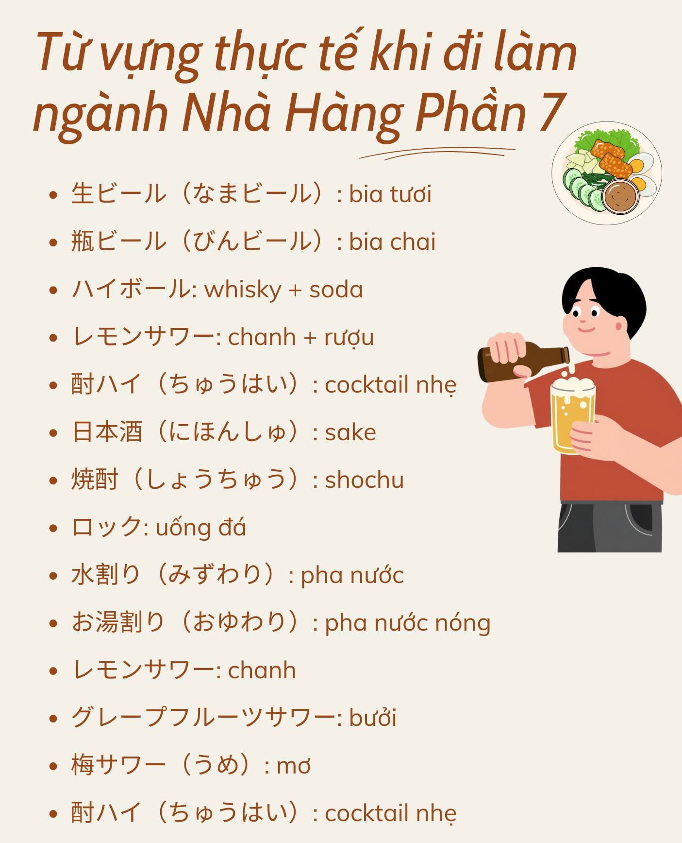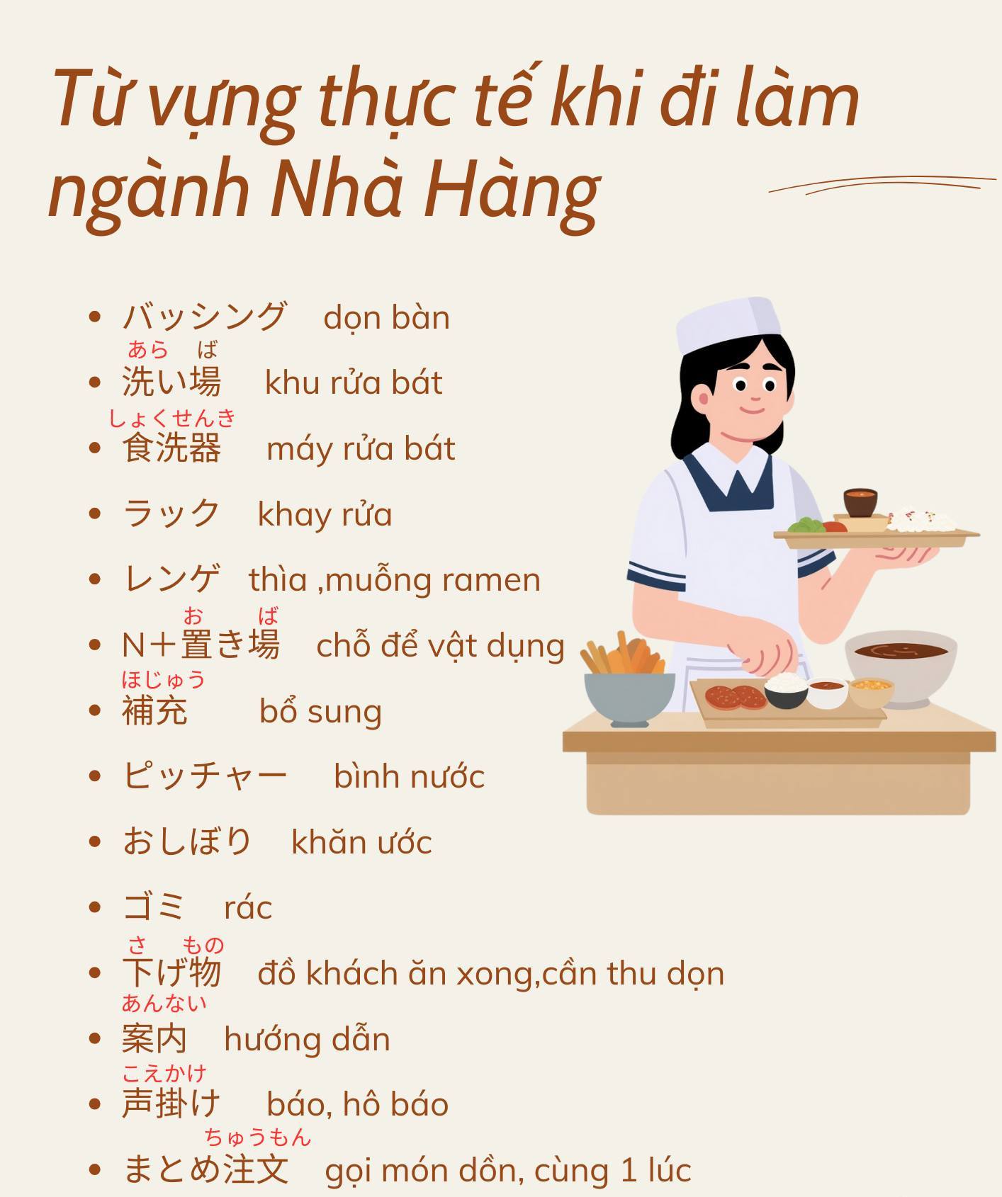 Từ vựng tiếng Nhật thực tế khi đi làm ngành Nhà Hàng ở Nhật