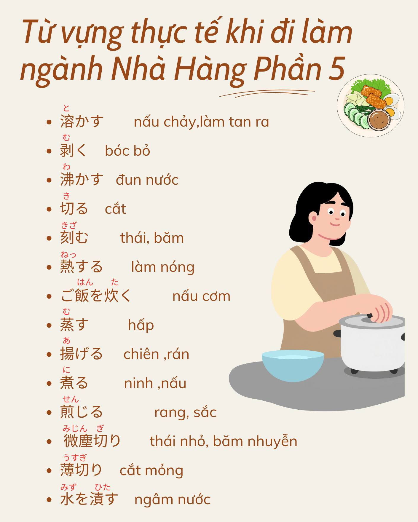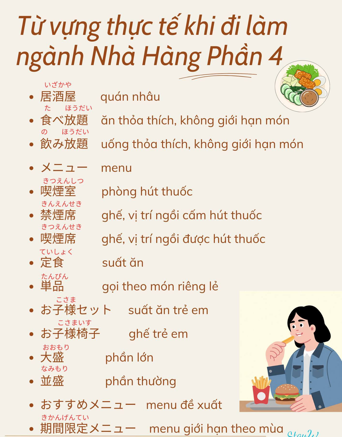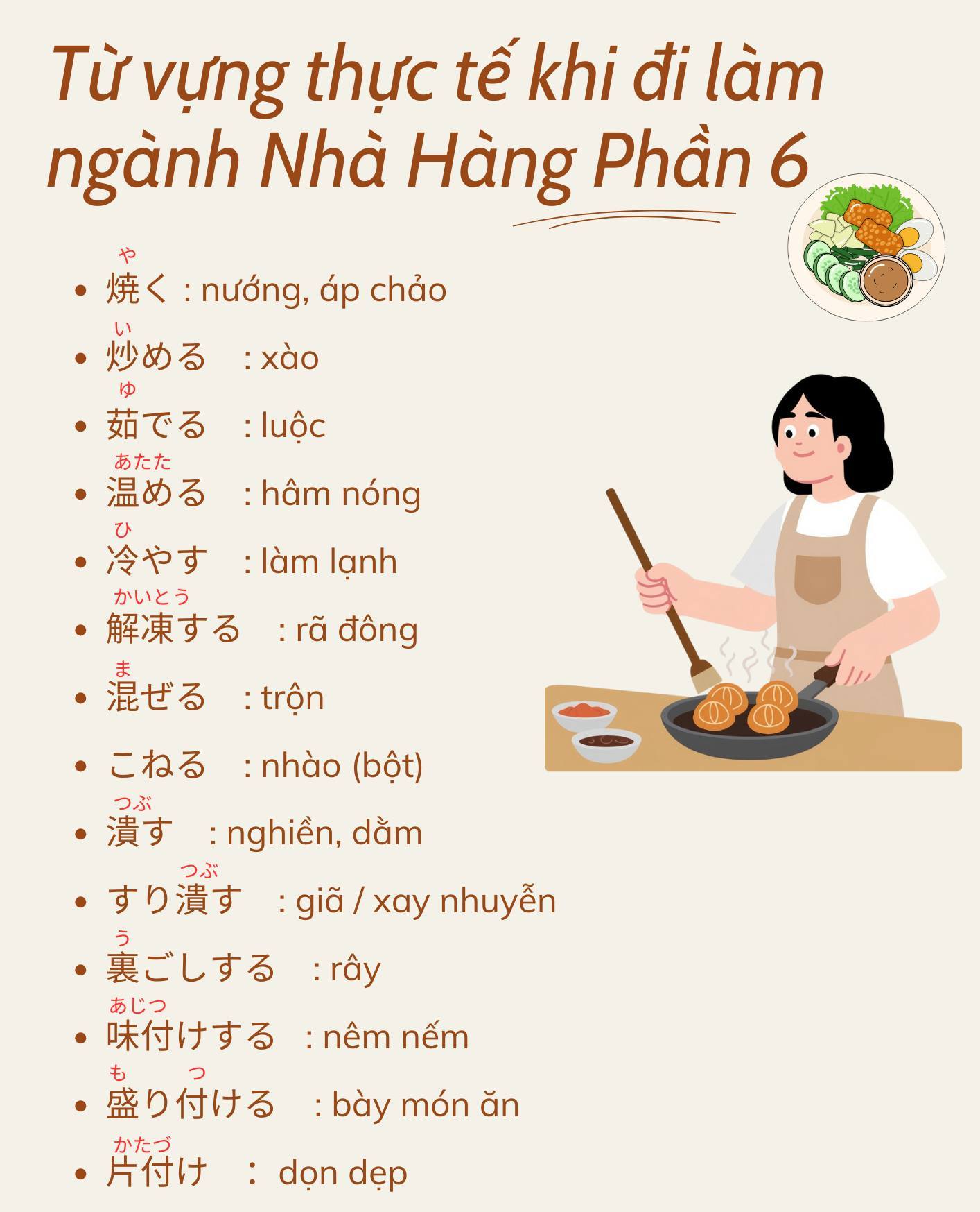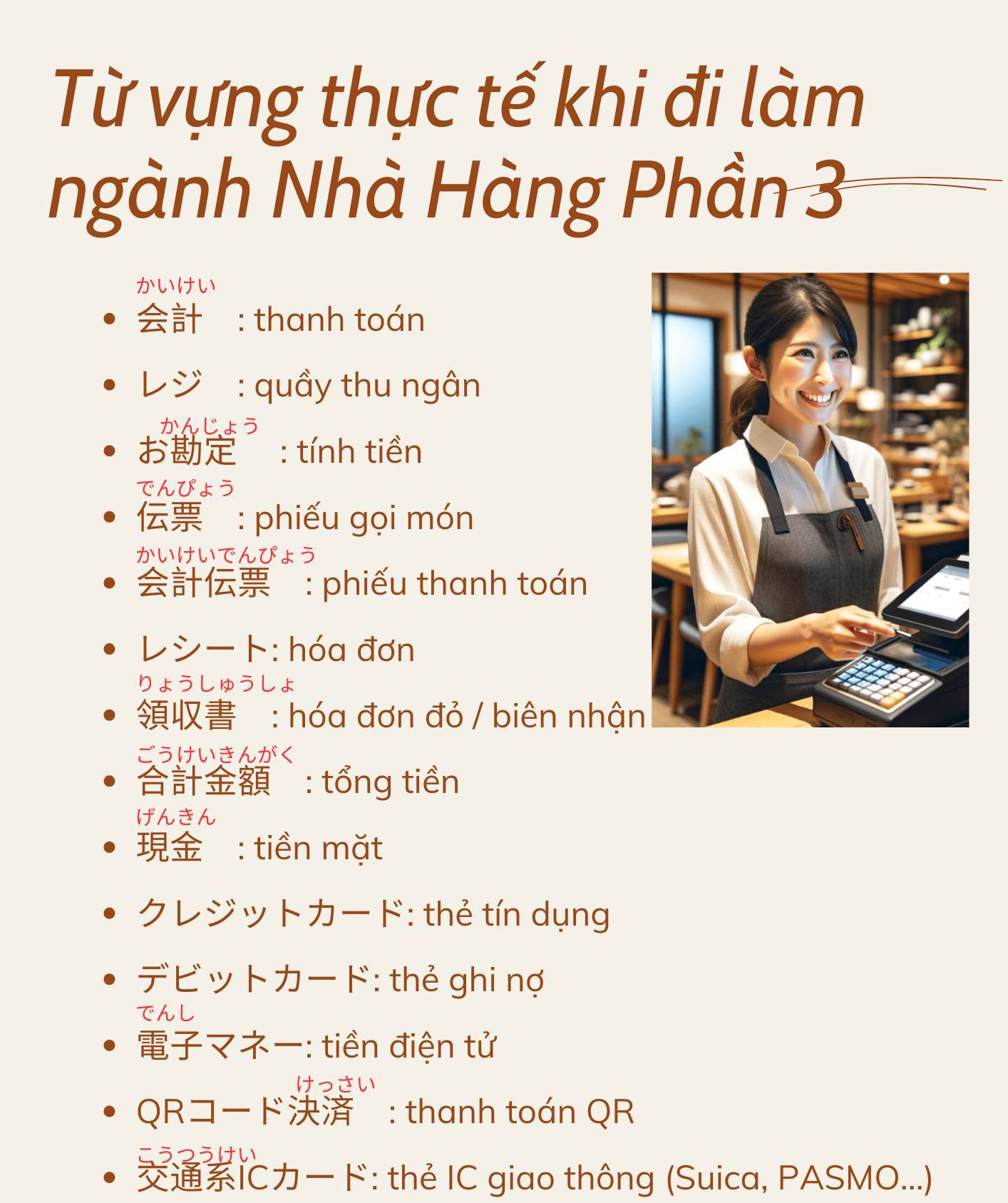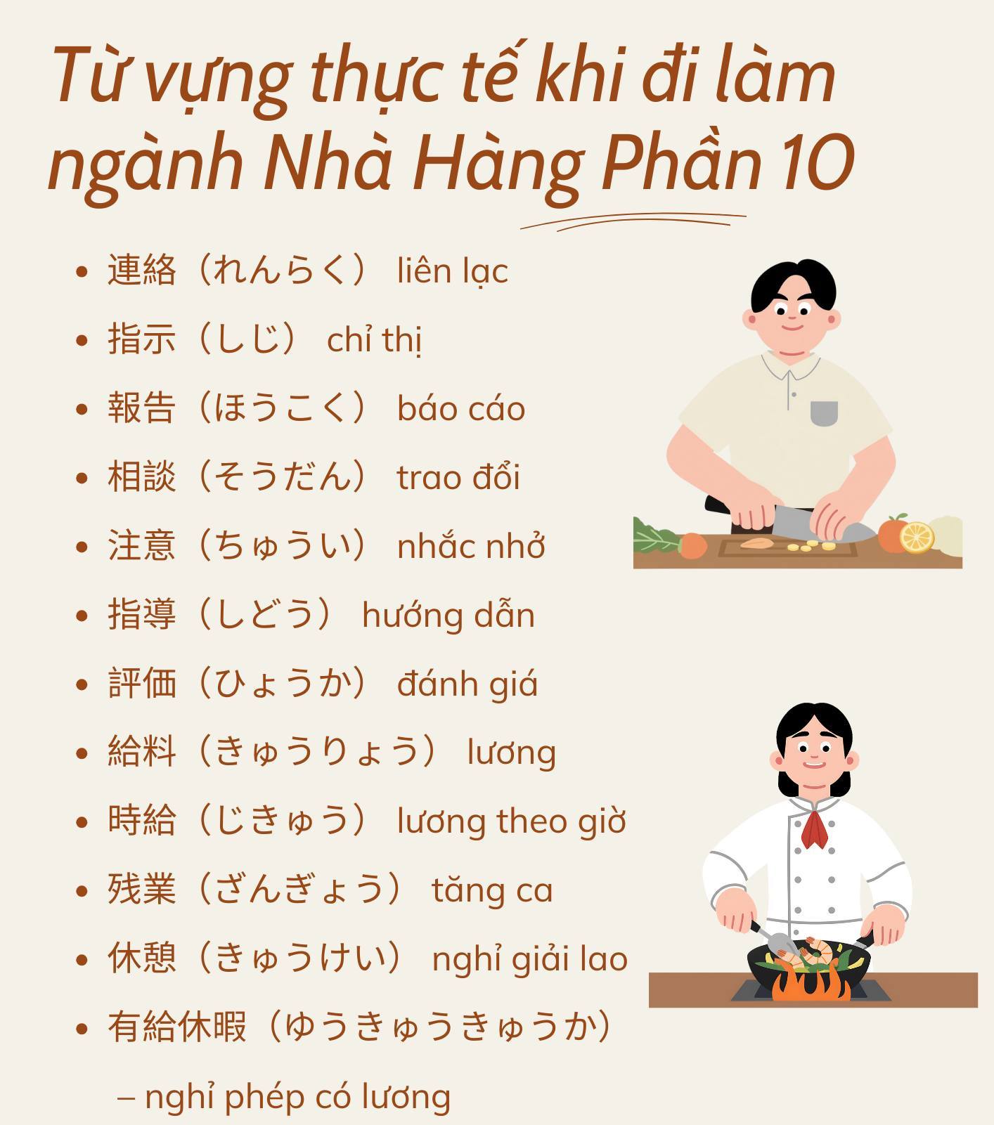 Từ vựng tiếng Nhật thực tế khi đi làm ngành Nhà Hàng ở Nhật